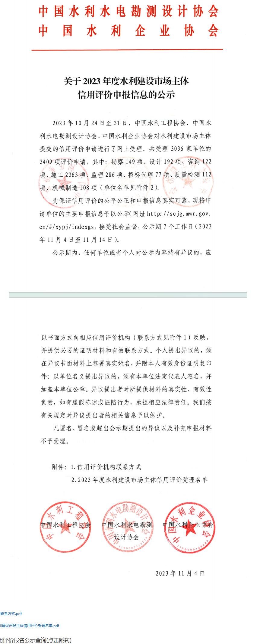 關(guān)于2023年度水利建設(shè)市場主體信用評價申報信息的公示